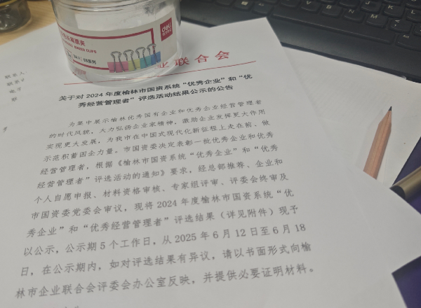 關(guān)于對(duì)2024年度榆林市國(guó)資系統(tǒng)“優(yōu)秀企業(yè)”和“優(yōu)秀經(jīng)營(yíng)管理...
